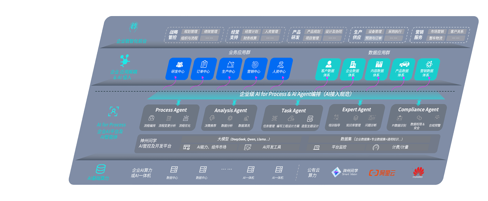 端到端的一站式AI工作空间深度融合了从企业战略规划到日常经营的全流程业务板块,,,,定向解决车企内部领域多、、部门多、、、、链条长、、、场景碎片化等难题,,,支持车企快速构建以AI为核心的生产力写作体系,,,实现任务执行与AI能力的无缝集成与交互
